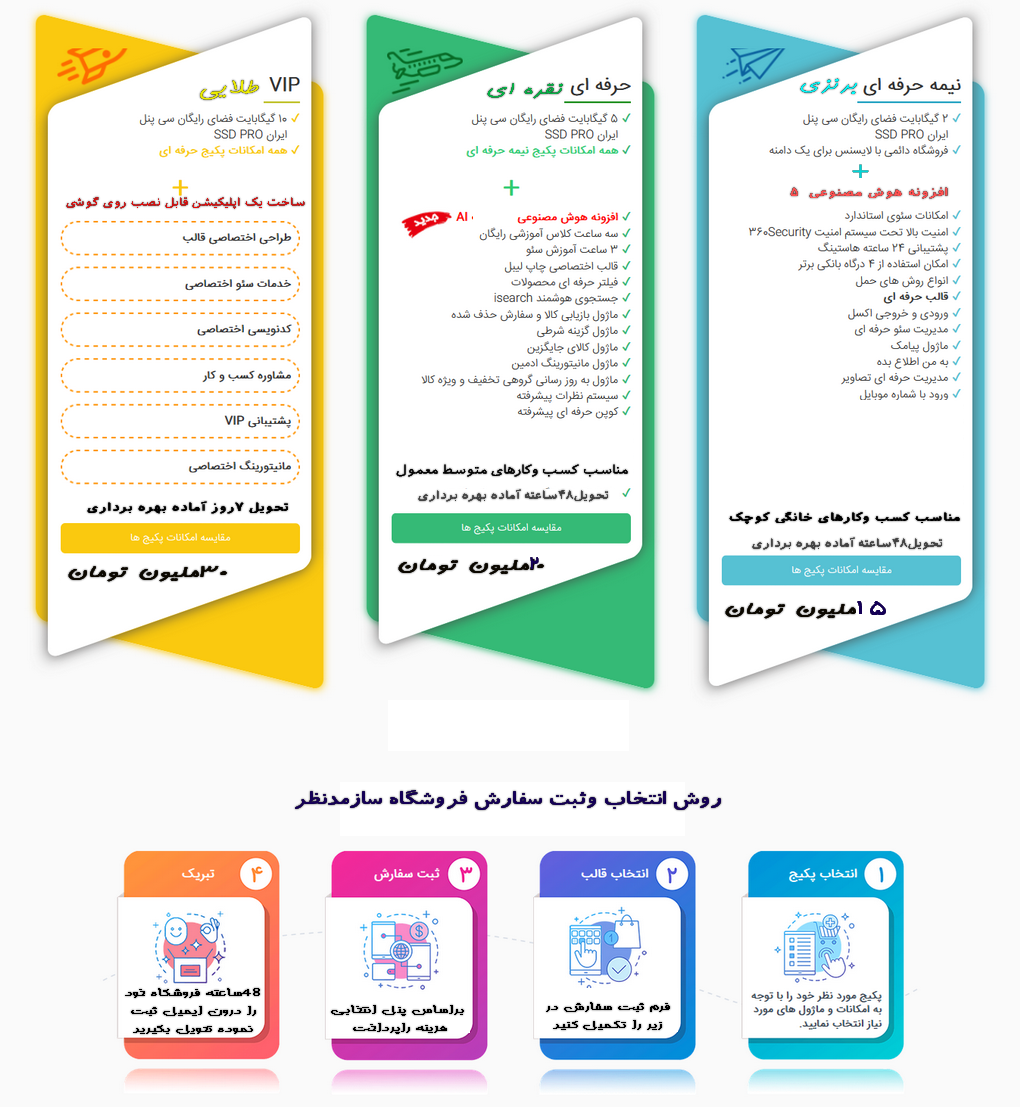 دراین پست پنلهای به روز فروشگاه سازاینترنتی تجاری فارسی منطبق باسیستم تجارت الکترونیک ایران که موردتائیداینماد وسندیکای اصناف تجارت الکترونیک پارسی شاپ میباشدودارای لانسس بین المللی مورد تائید وبمسترماکروسافت,یاندکس,یاهو-وبمسترگوگل میباشدواخیرا بابه روزرسانی این سیستم مجهزبه هوش مصنوعی شده برای انتخاب وسفارش کاربران قرارداده میشودکه درسه پنل جهت کاربریهای مورد نیاز فروشندگان اینترنتی کالاوخدمات طراحی وارائه میشود.
